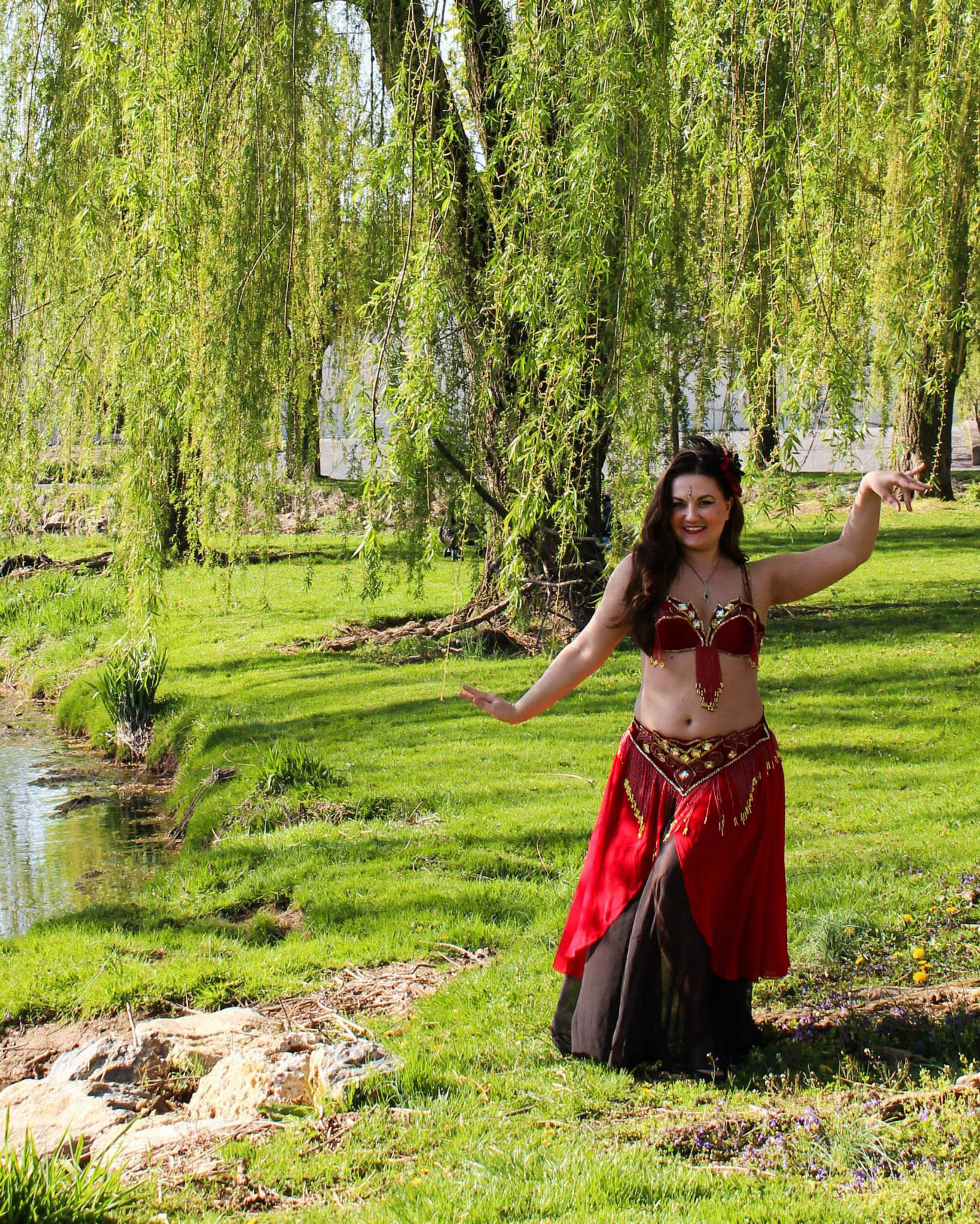 Starting at $250 for two 15-20-minute belly dance performances with props (silk veil, sword balancing, wings, fans, candle tray), audience interaction, and photos with guests. Rates are variable depending on the distance to an event and if fire performing is involved. Ongoing restaurant, hookah lounge and nightclub gigs start at $150. Weddings and fire performances start at $300. Weddings with fire performance start at $500. Inquire about solo and group bellydance lessons. A lesson can also be added to an event booking.