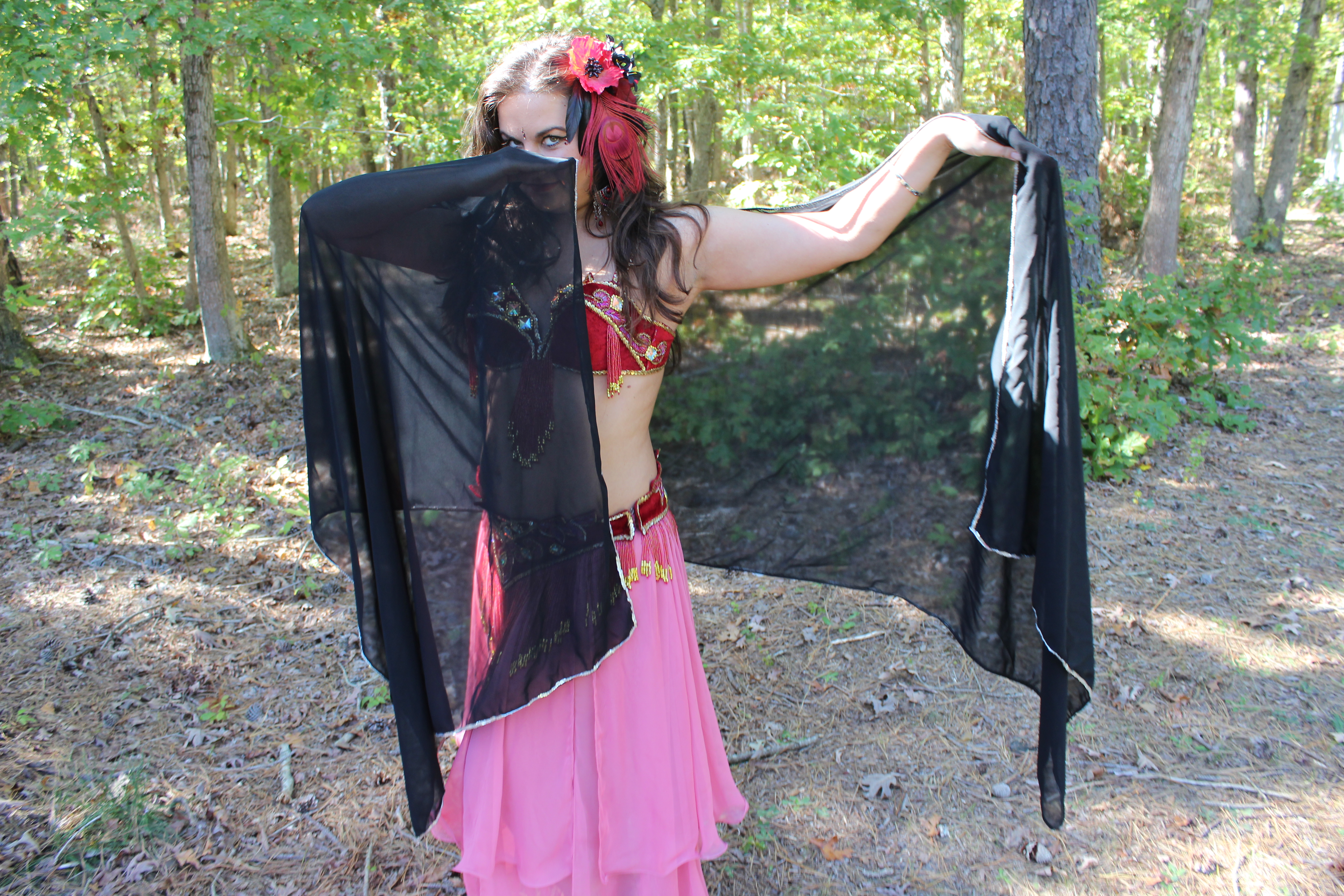 Lorenda is a fusion-style belly dancer from Atlantic City, NJ who enchants audiences with fire performance, LED and glow props, swirling swords, wings, fabulous fans, and silk veils. Her repertoire includes a mix of American cabaret, Egyptian Oriental, and tribal fusion. She has danced professionally since 2009 as a solo artist, with the Burning Hearts Fire and Light Theater, the Daughters of Terpsichore, internationally acclaimed Soraya’s Mid-East Dance and Music Productions, and more.